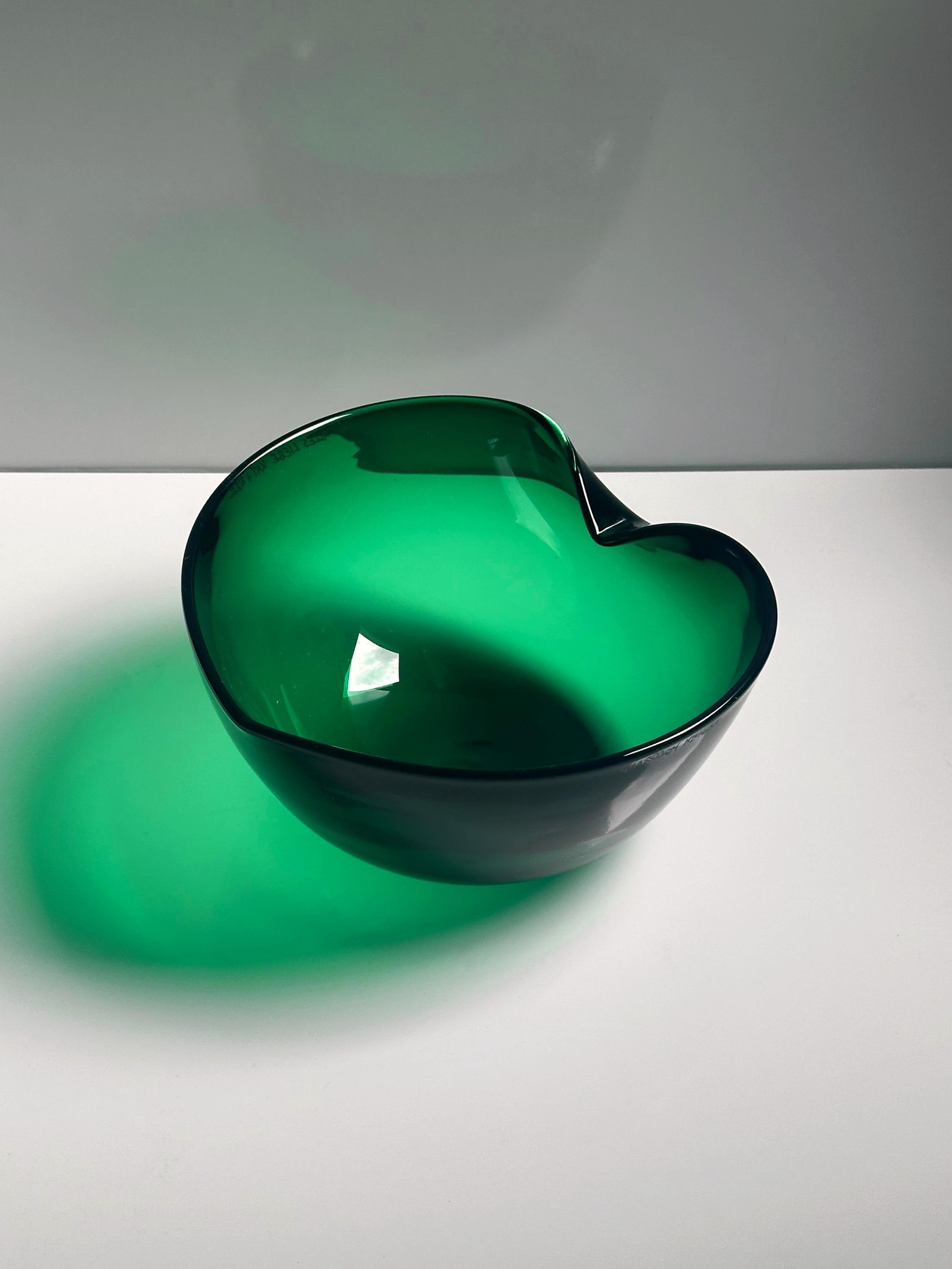 Vintage glass bowl Glasstorm Scotland Mid Century bowl green handmade 1950s 50s ashtray Vide Poche Murano bottle green