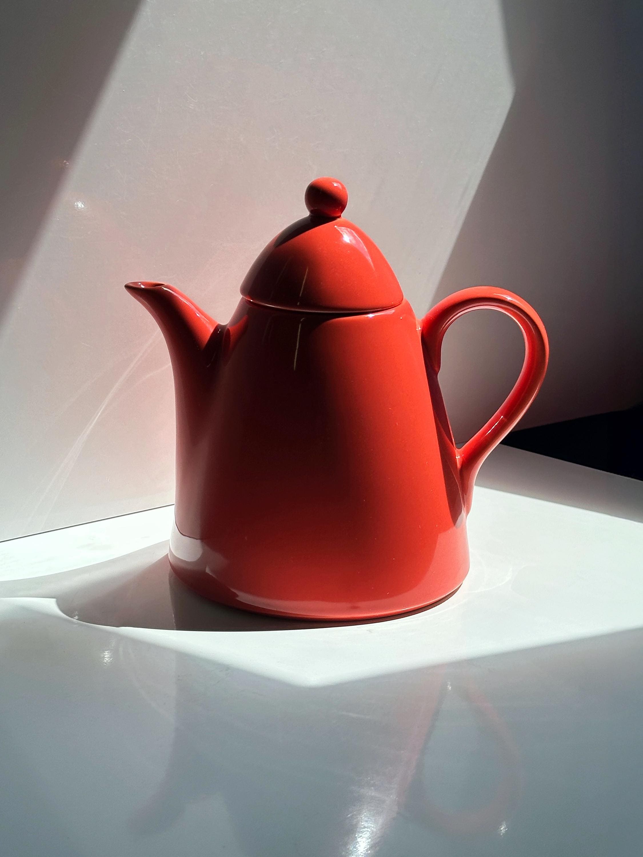 Exceptionally beautiful teapots from the 1990s in coral red. Beautiful postmodern design by Pagnossin Treviso, Italy. Pours very smoothly!