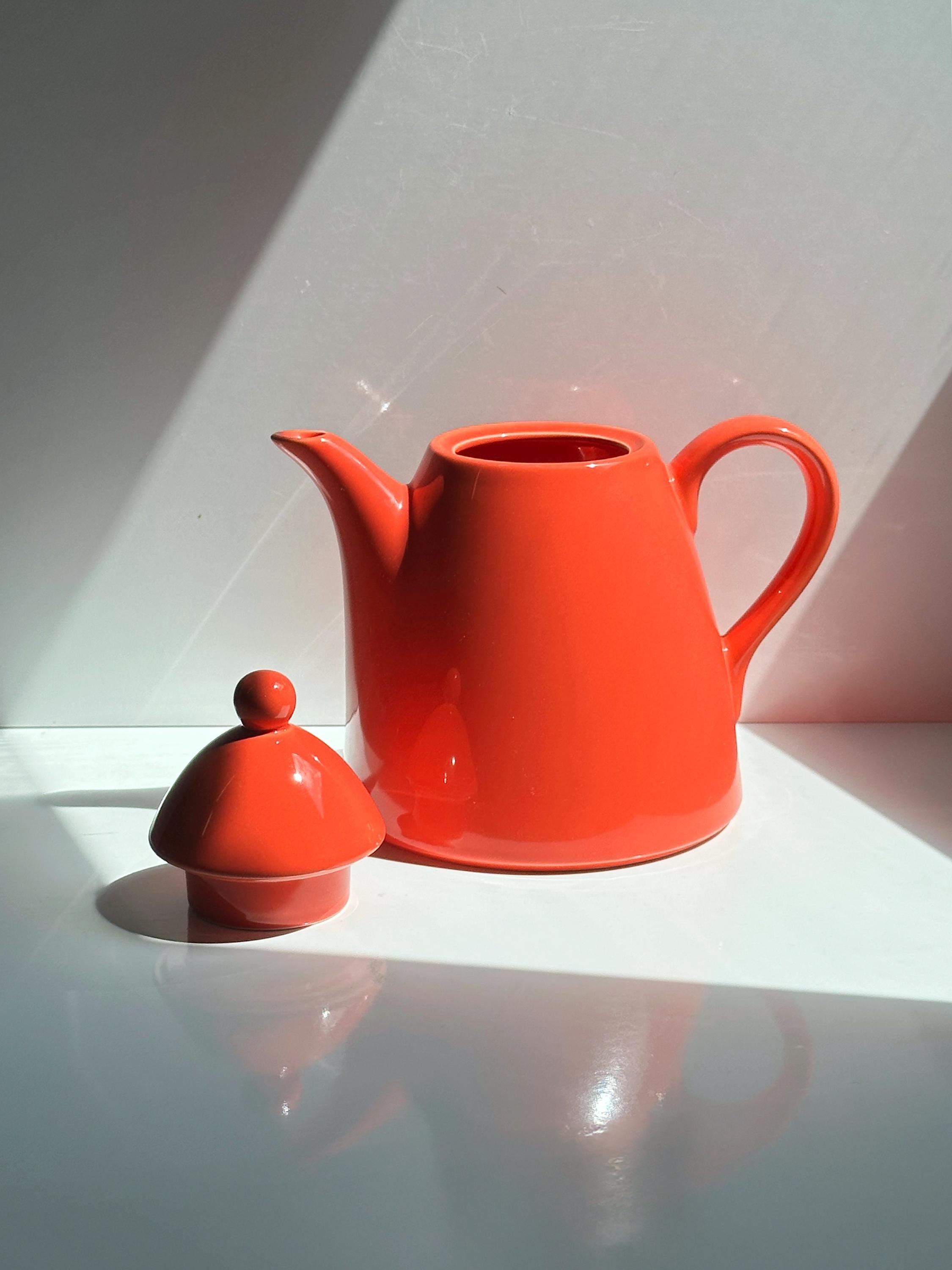 Vintage Pagnossin Italy Postmodern Tea Pot 80s Memphis Milano Ceramic Porcelain Coral Red Orange Sottsass Ettore Treviso