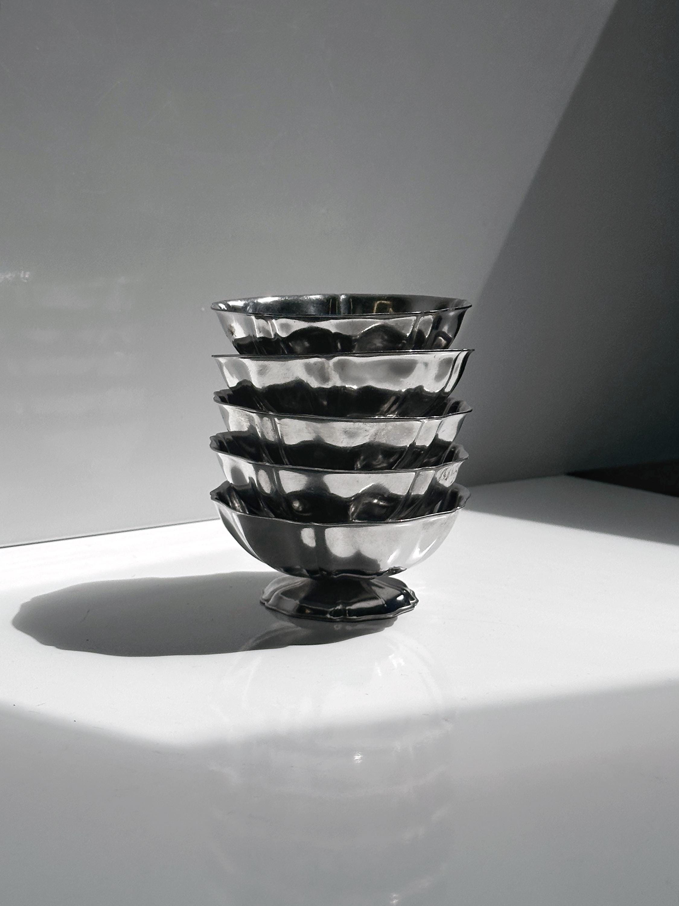5x Inox dessert bowls flower shape low ice cream bowl metal decor cup glass 80s gelato cup foot bowl stainless steel Italy