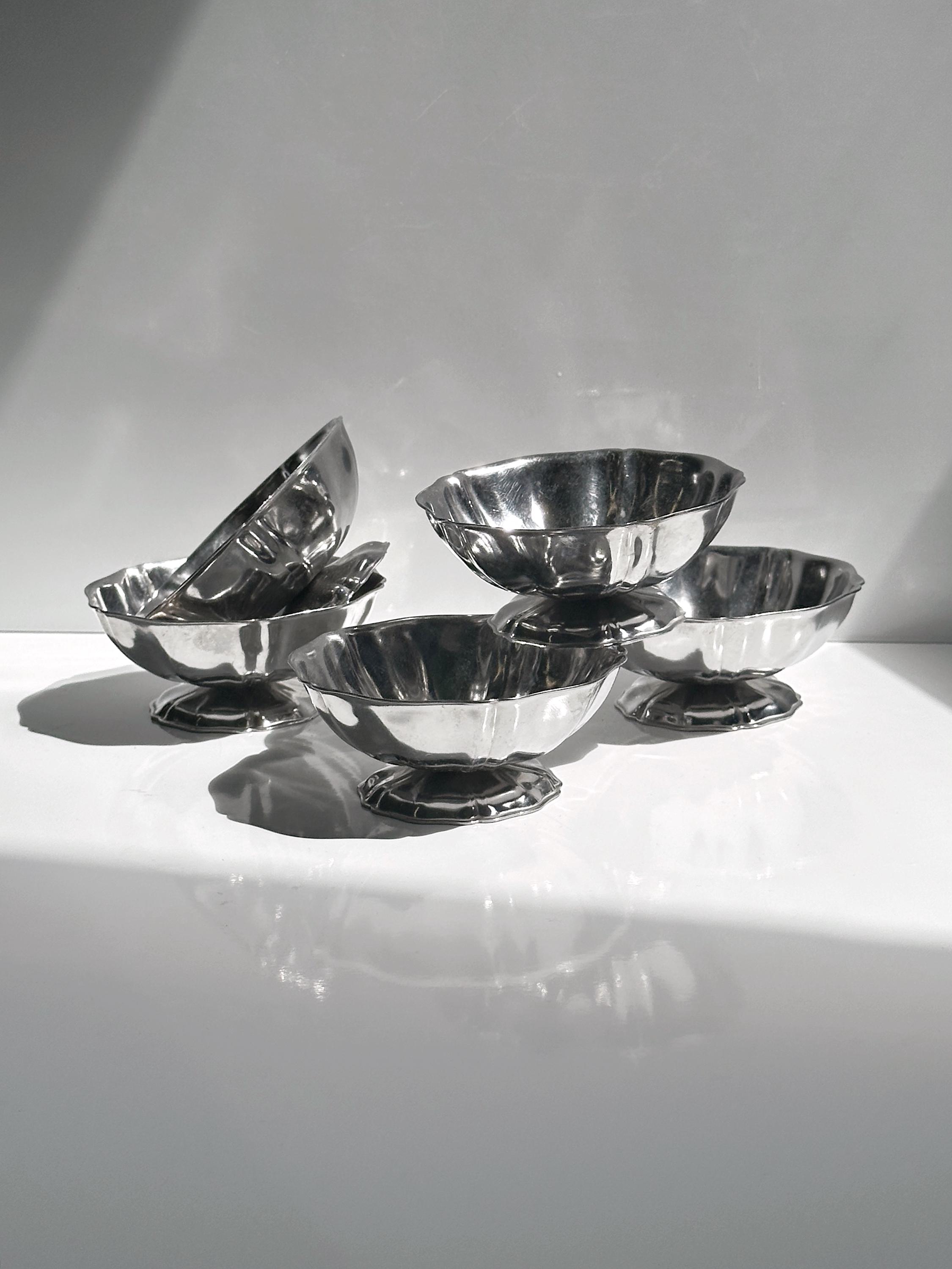 Five very beautiful Italian dessert bowls from the 1980s, made of stainless steel. The bowls are flower-shaped and ideal for gelato and other delicacies.