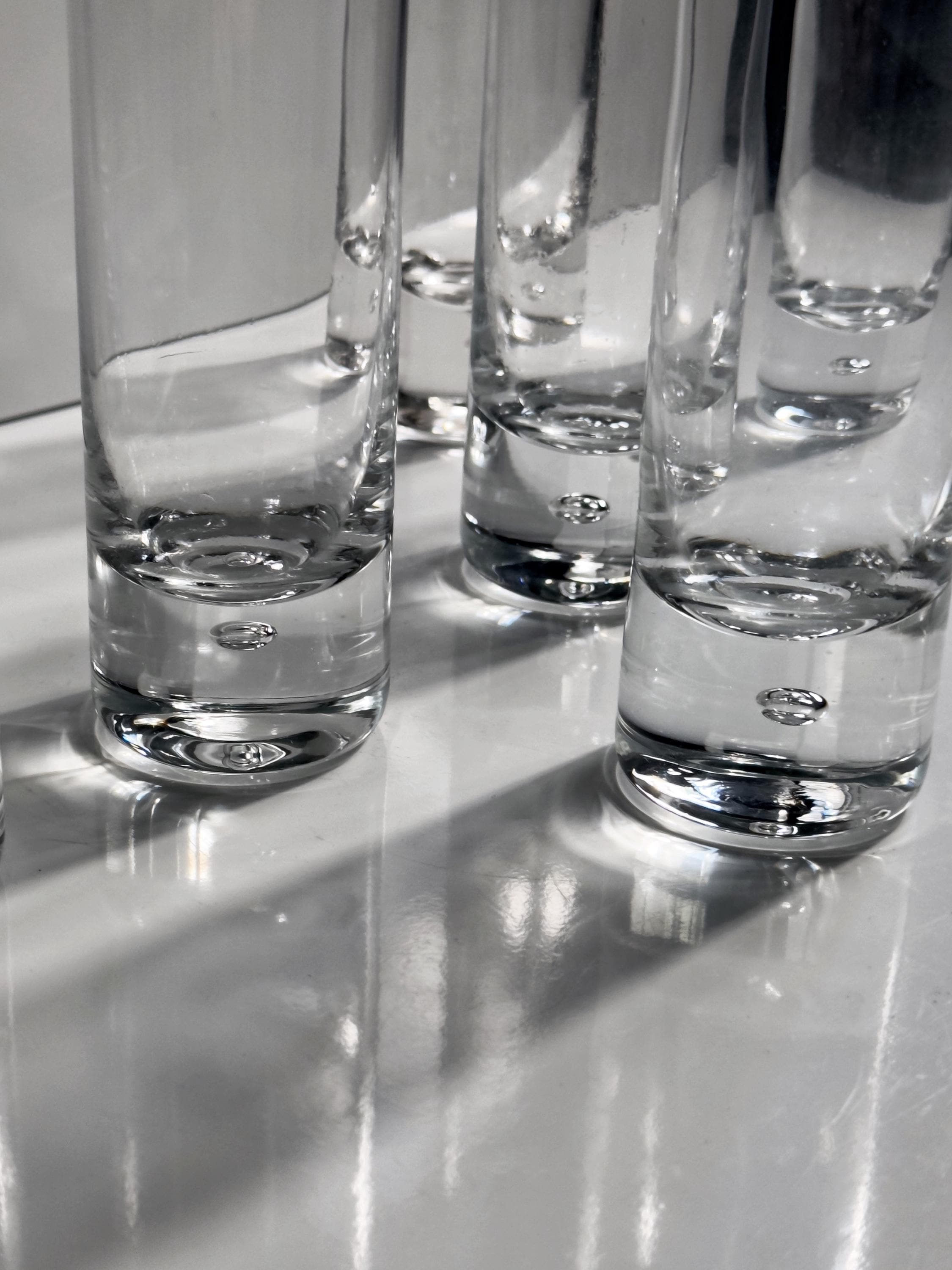 One glass is slightly shorter than the others.