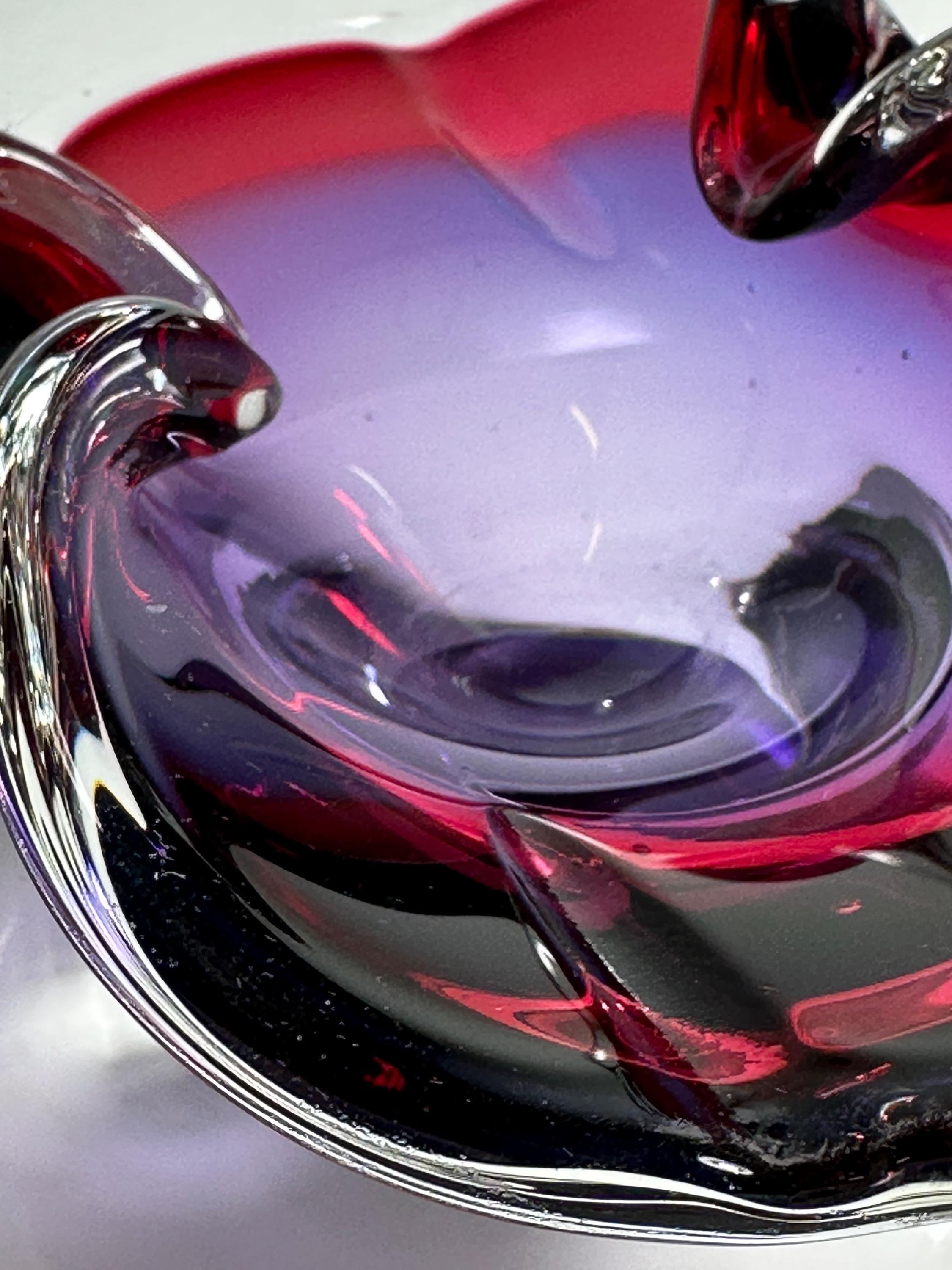 Vintage Ashtray / Vide Poche Josef Hospodka - Chřibská Bohemian Cranberry Violet Glass Sklo Skrdlovice Bohemia Mid Century