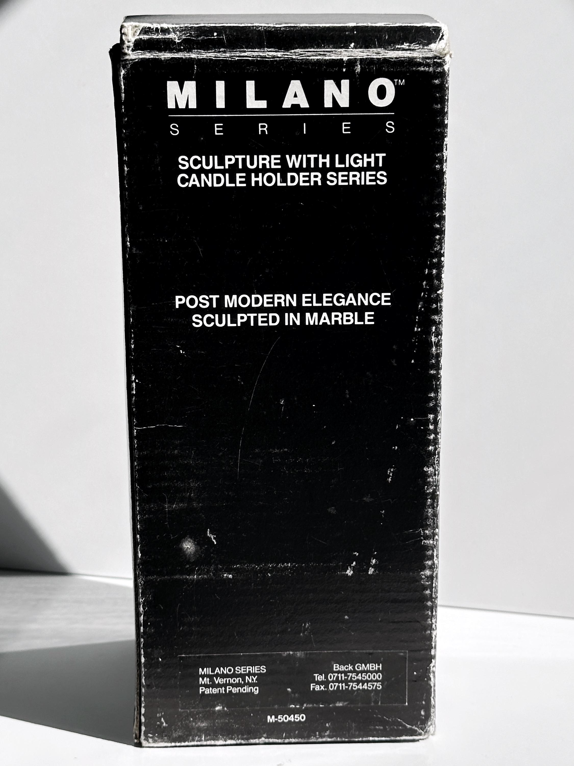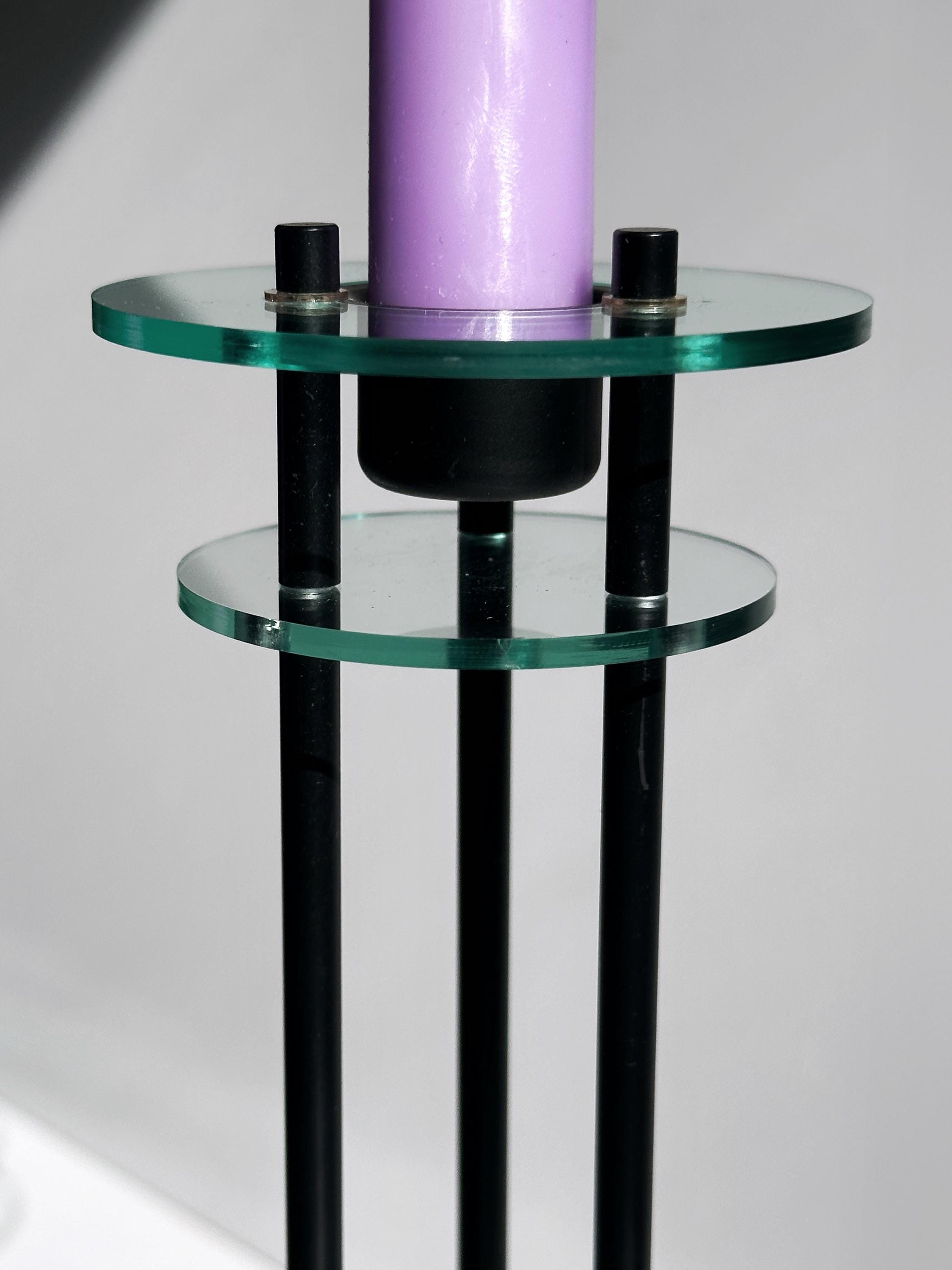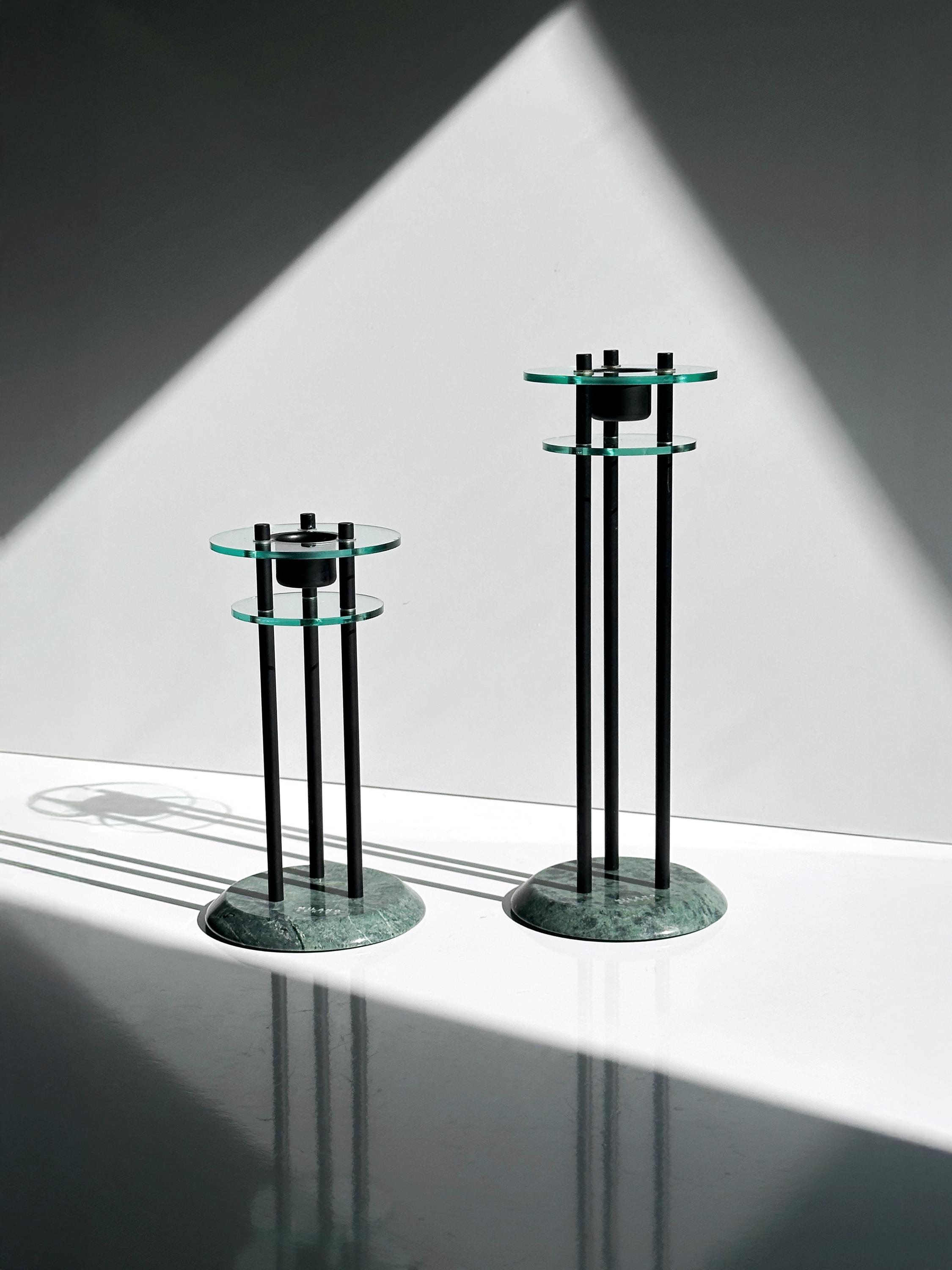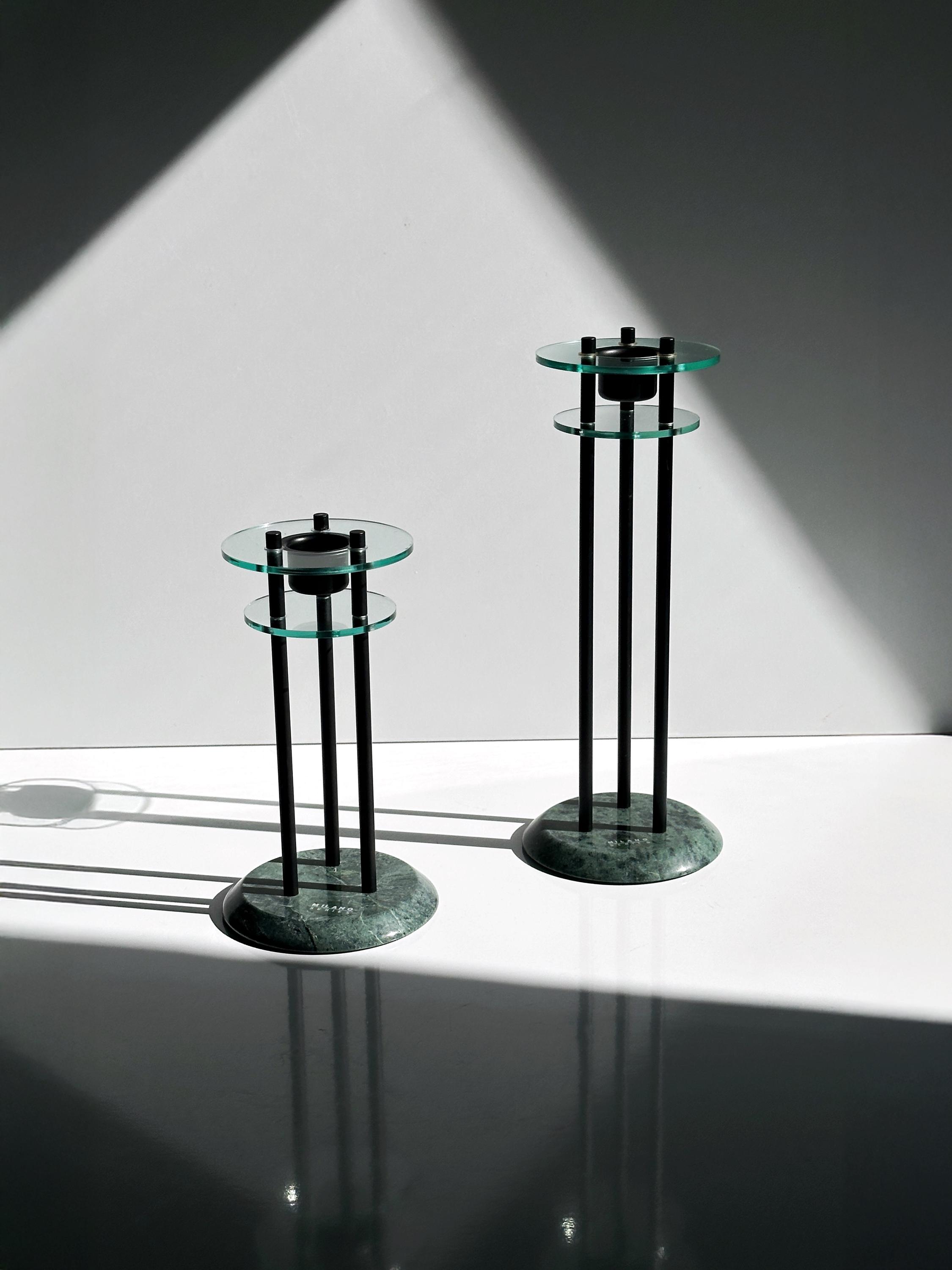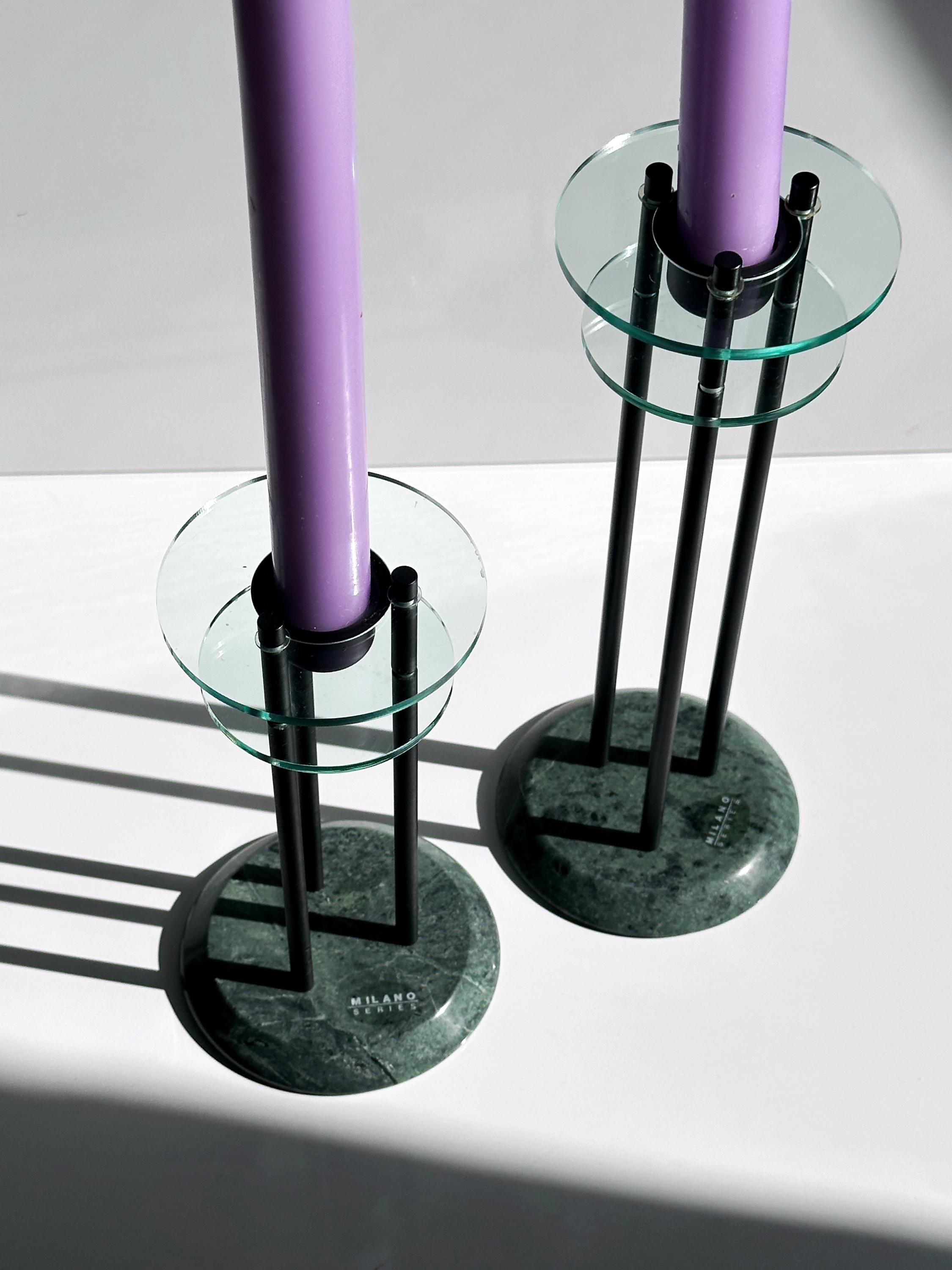 Milano Series Design 80s Art Deco Revival Candlestick Postmodern Marble Green Pair Set Metal Black Glass Candlestick