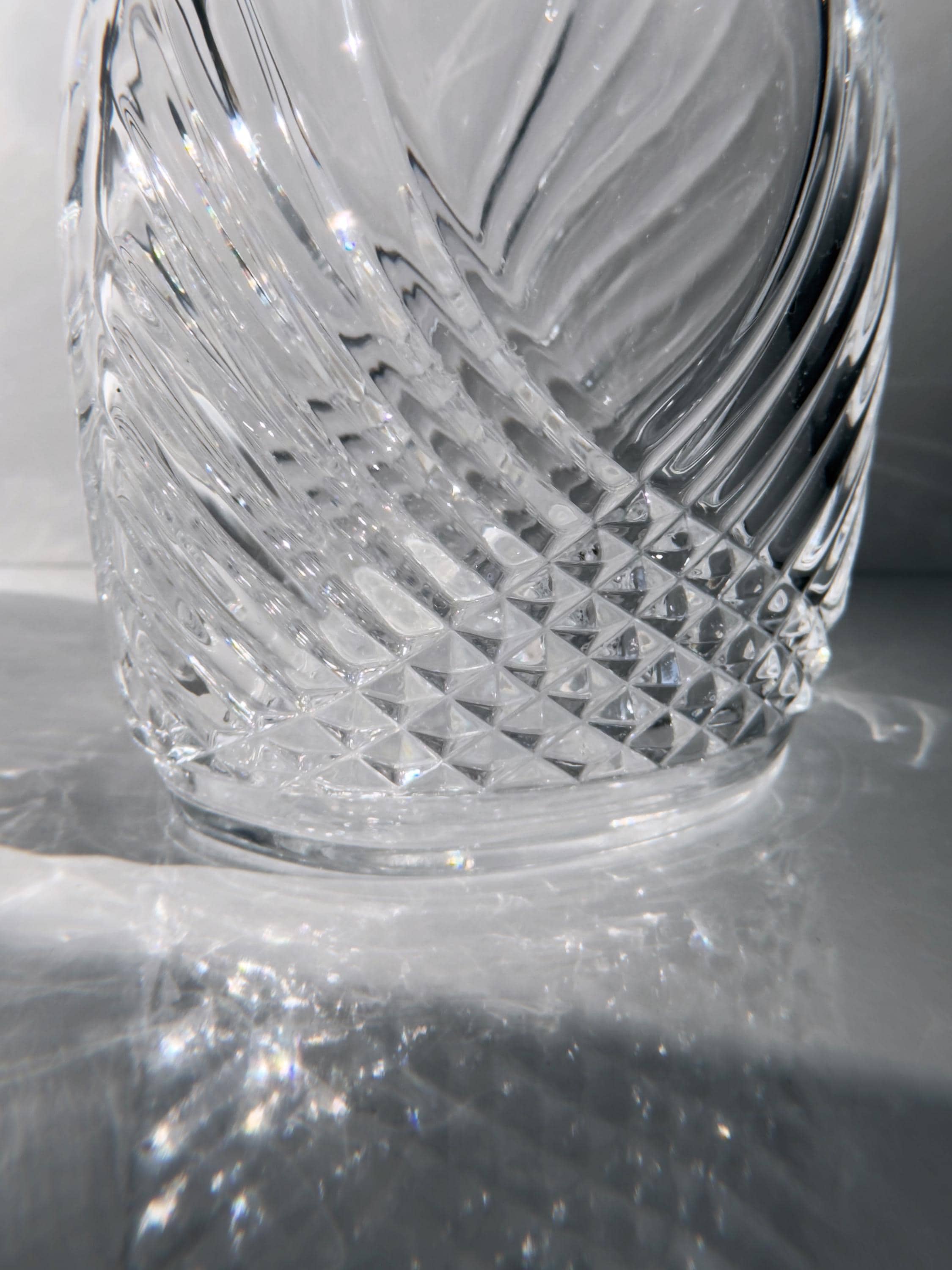 Transparent, high-quality glass with an Art Deco-style etched design.