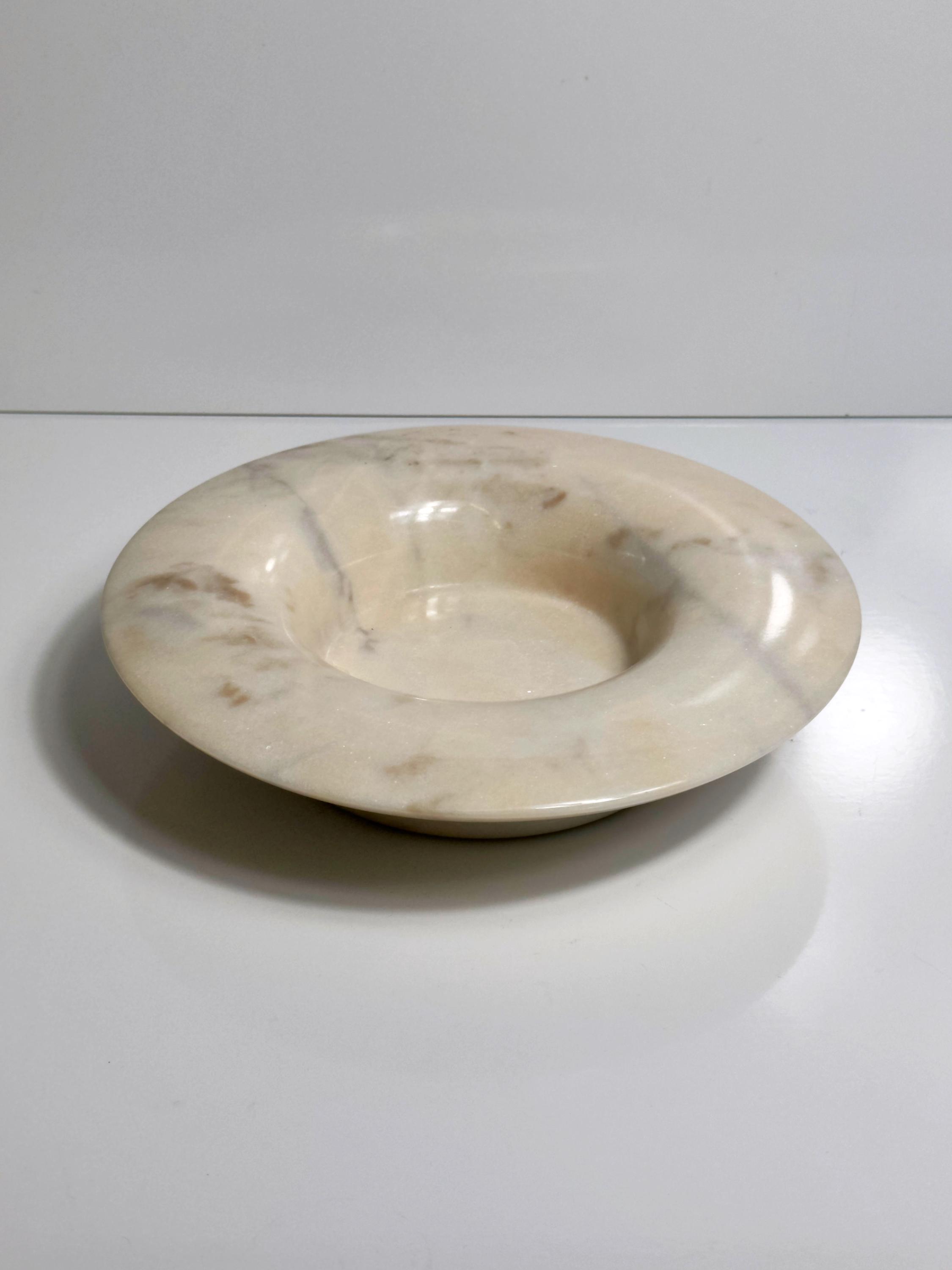 Beautiful Italian bowl from the 1970s. Handcrafted alabaster in a soft beige tone with pink undertones and subtle veining. Elegant mid-century design, ideal for use as a fruit bowl.