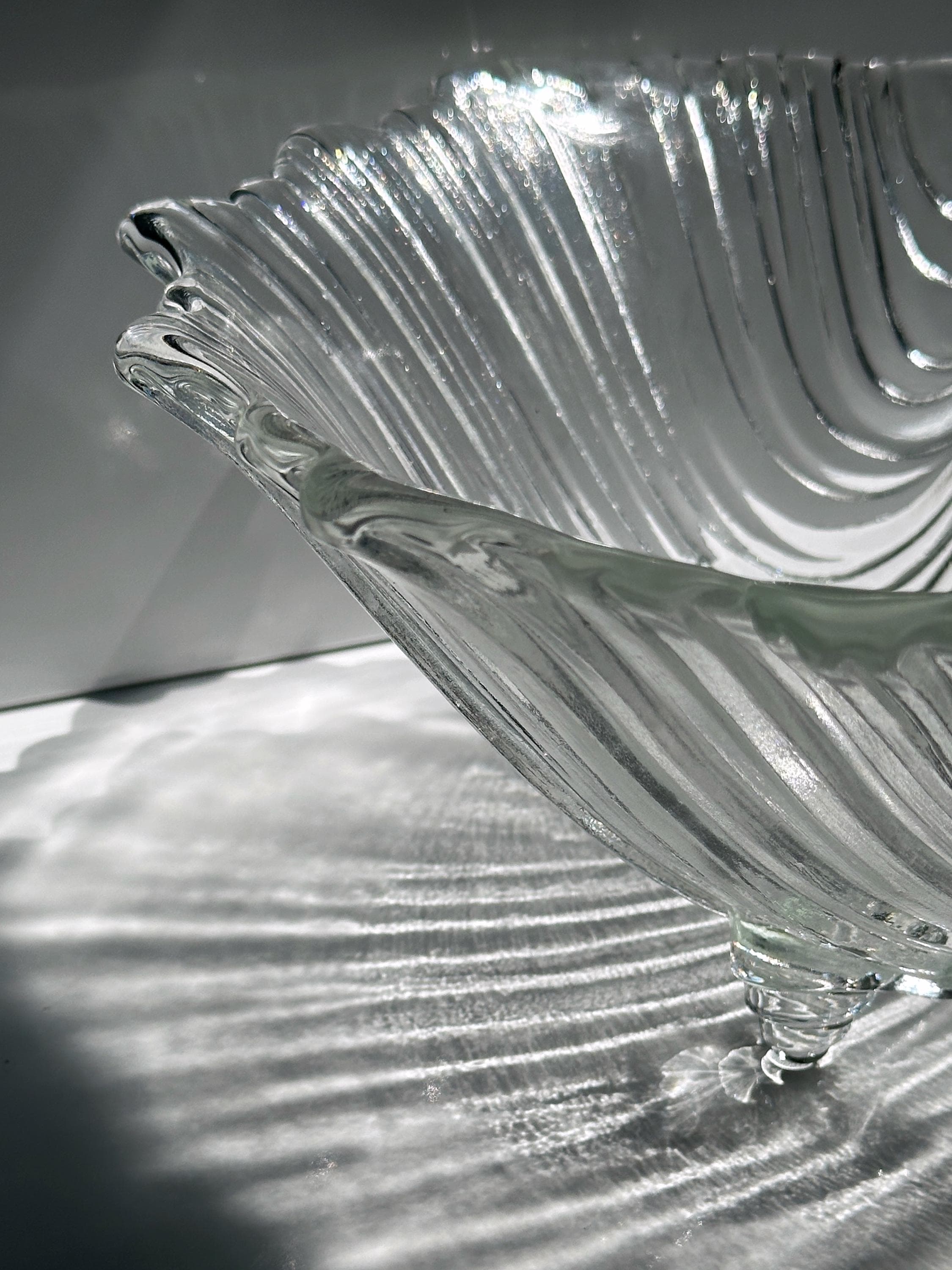 Beautiful large glass bowl from the 1980s in the Art Deco Revival style. In a shell shape.