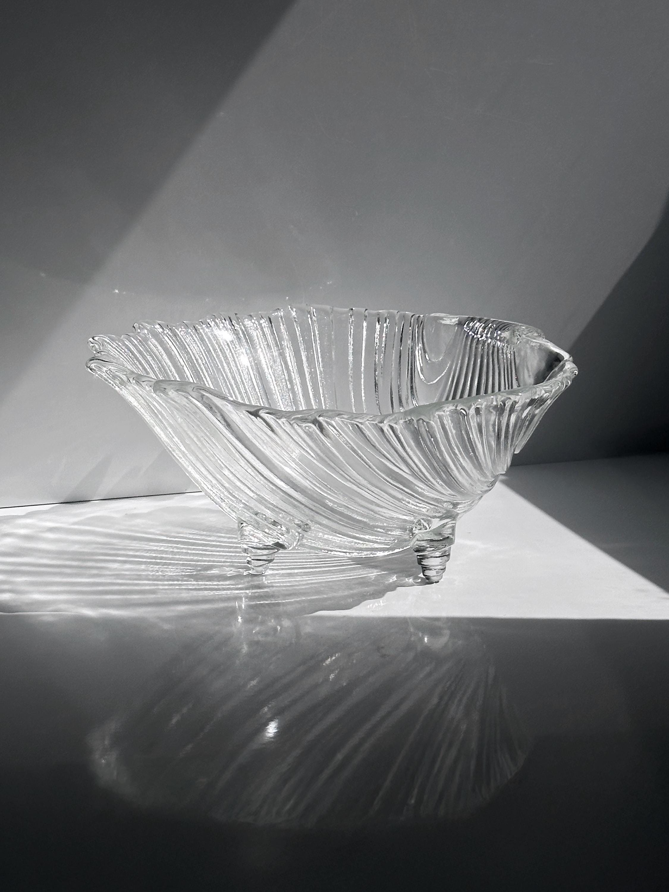 Large glass bowl, shell shape, 1980s Art Deco Revival, 80s/90s crystal bowl, serving bowl, fruit bowl