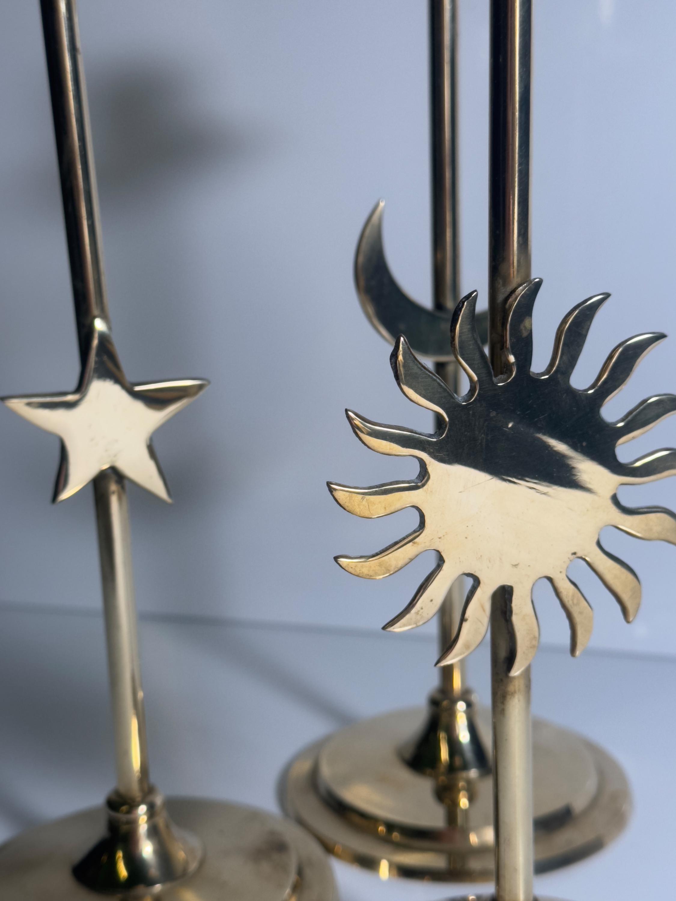 3 x Brass Candle Holders Sun Moon Star Whimsigoth Candlestick Candlestick Metal Gold 80s 90s